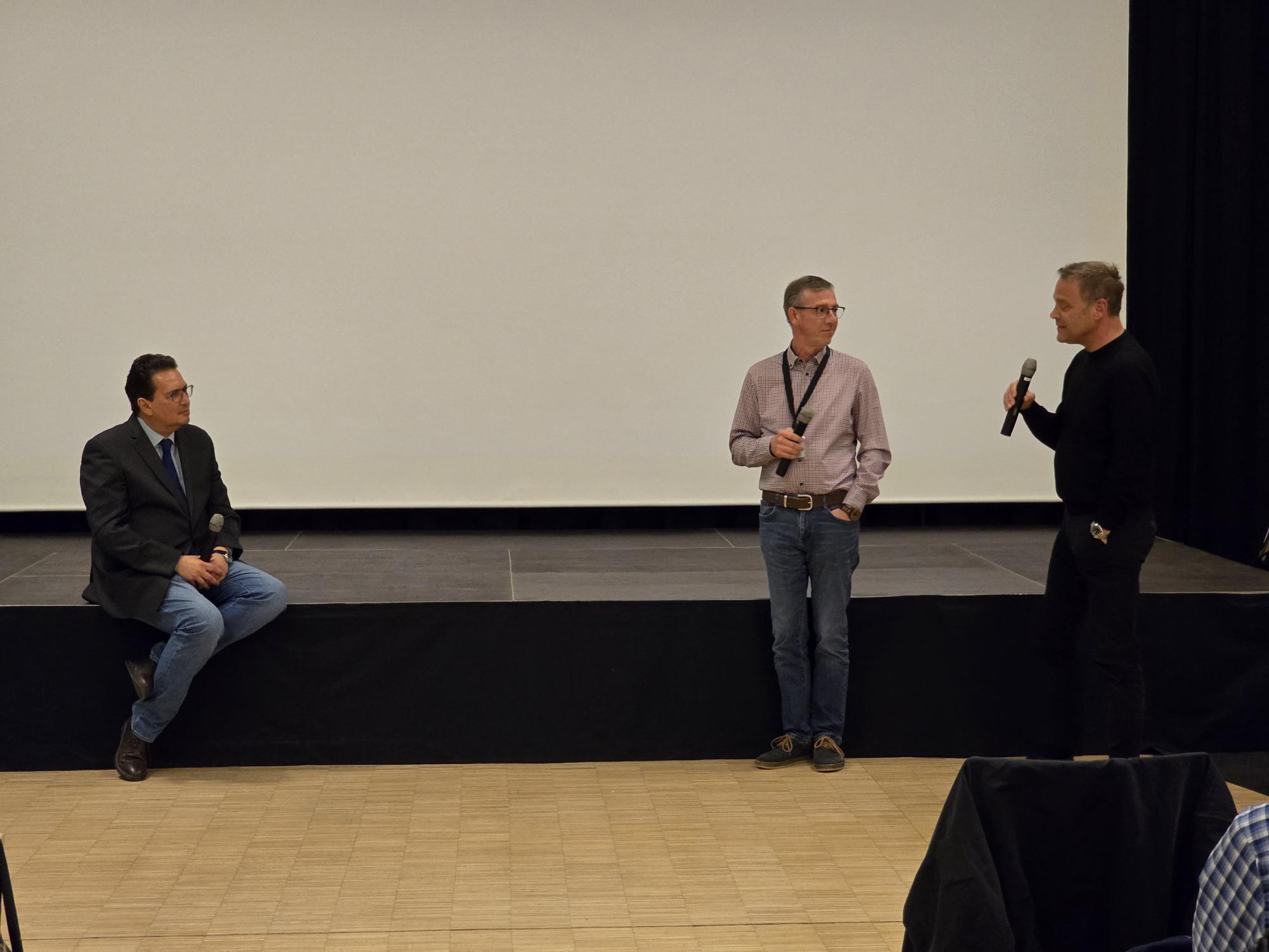 Im Anschluss des Films gab es eine Gesprächsrunde mit dem Filmemacher und Moderator Frank Farenski, dem Teltower Klimaschutzmanager Matthias Putzke und dem Geschäftsführer von Elektro Rümpel Bert Rümpel. Die Gäste konnten ihre Fragen zu den Themen des Films stellen. Dabei ging es u.a. um aktuelle Gesetze und Bestimmungen, die die Umsetzbarkeit oftmals erschweren können, aber auch um die Perspektive, welche Bestimmungen zu erwarten sind. Besonders interessant waren die Ausführungen zum Stand des Klimaschutzes der Stadt Teltow.